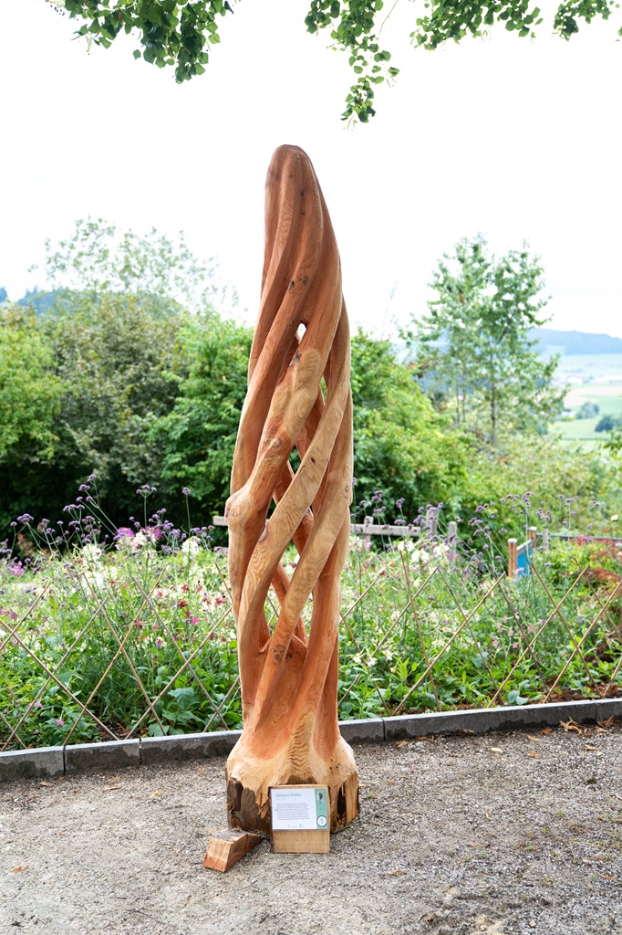Grundsätzlich ist das Bearbeiten von Holz auch immer ein Zusammenspiel und eine Auseinandersetzung mit der von der Natur vorgeformten Materie. Es entsteht dabei vielfach eine tiefe Verbindung zu den werdenden Skulpturen. Diese ist für mich in mehrfacher Weise eine sinnliche und emotional Erfahrung und belebt die Fantasie. Ich freue mich, wenn die Betrachtenden daran teilnehmen.